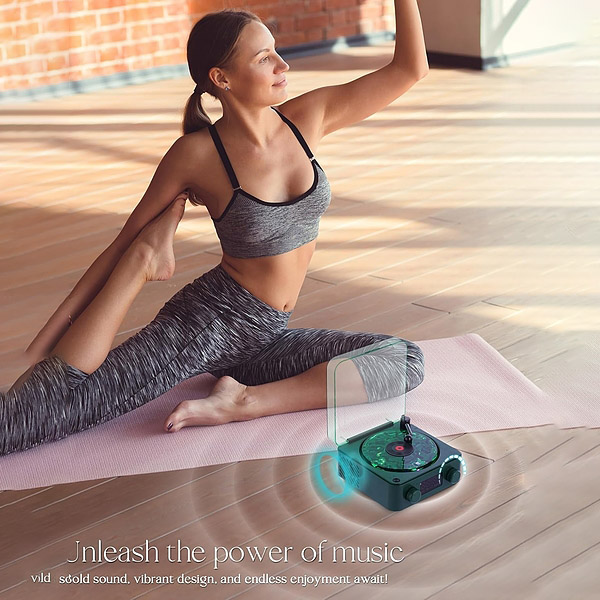 A retró bakelit lejátszó megjelenése klasszikus stílust kölcsönöz az íróasztalodnak vagy az éjjeliszekrényednek.